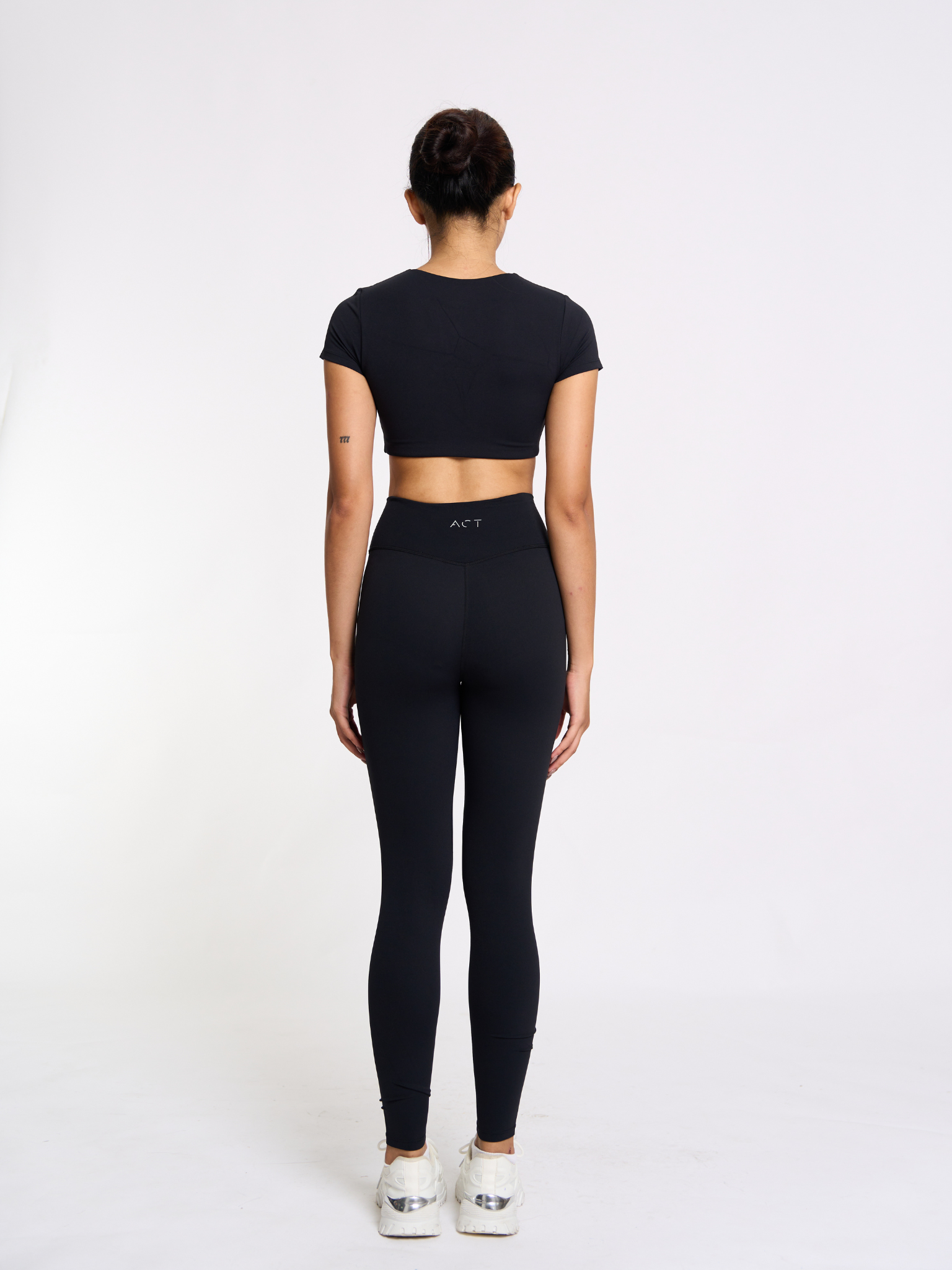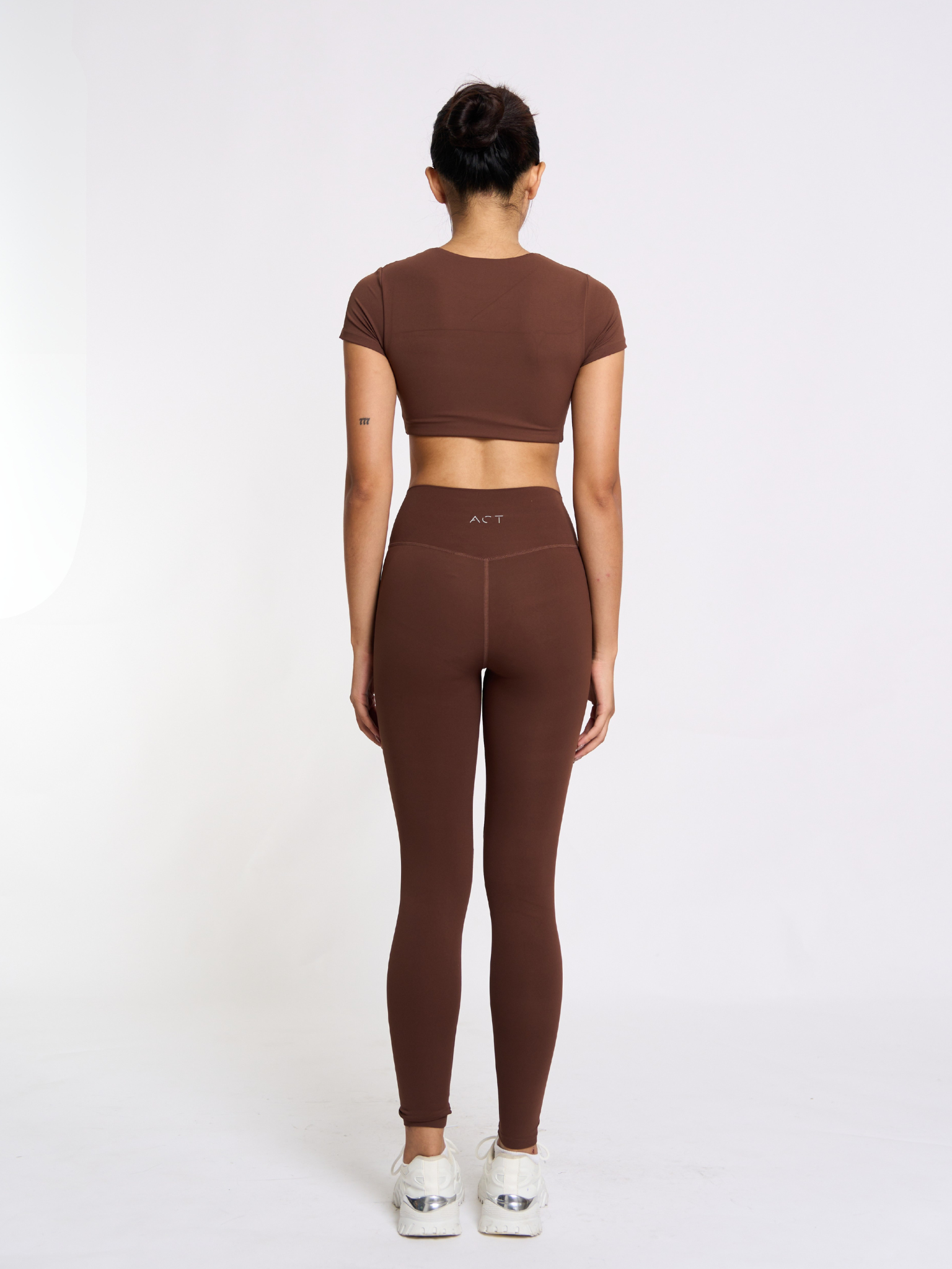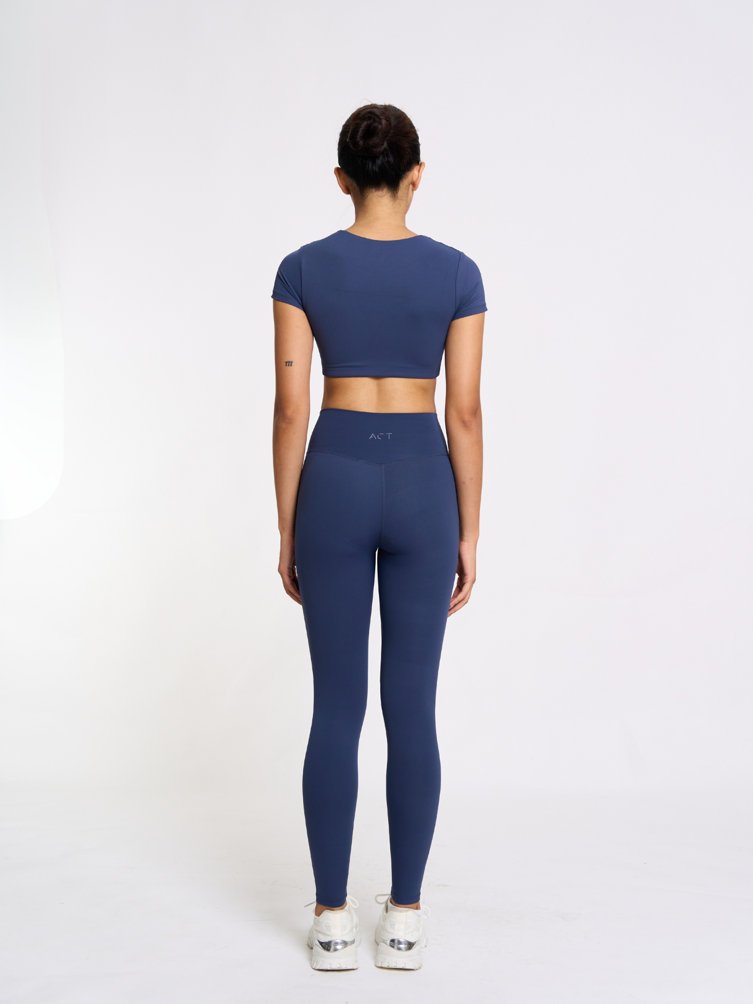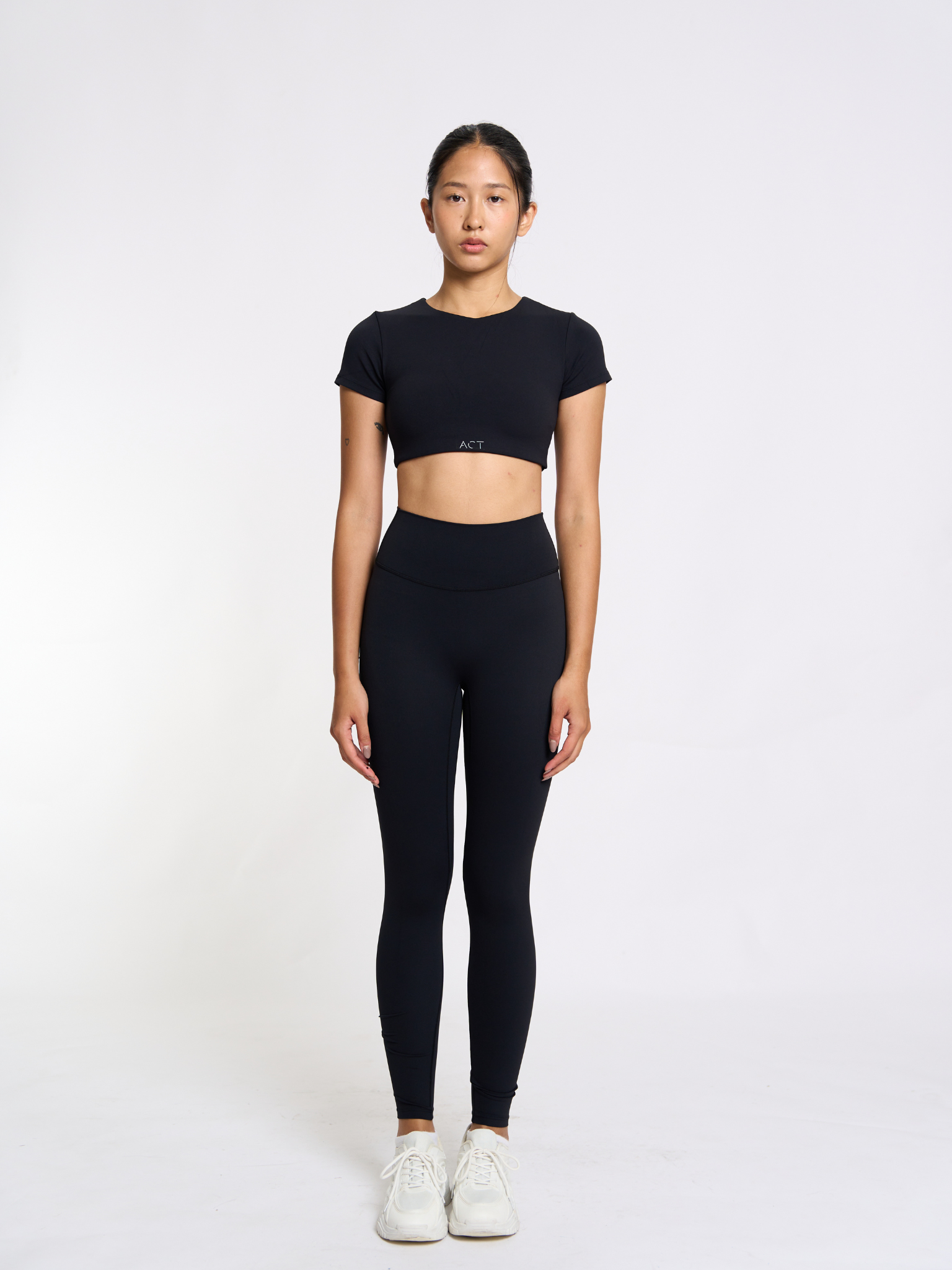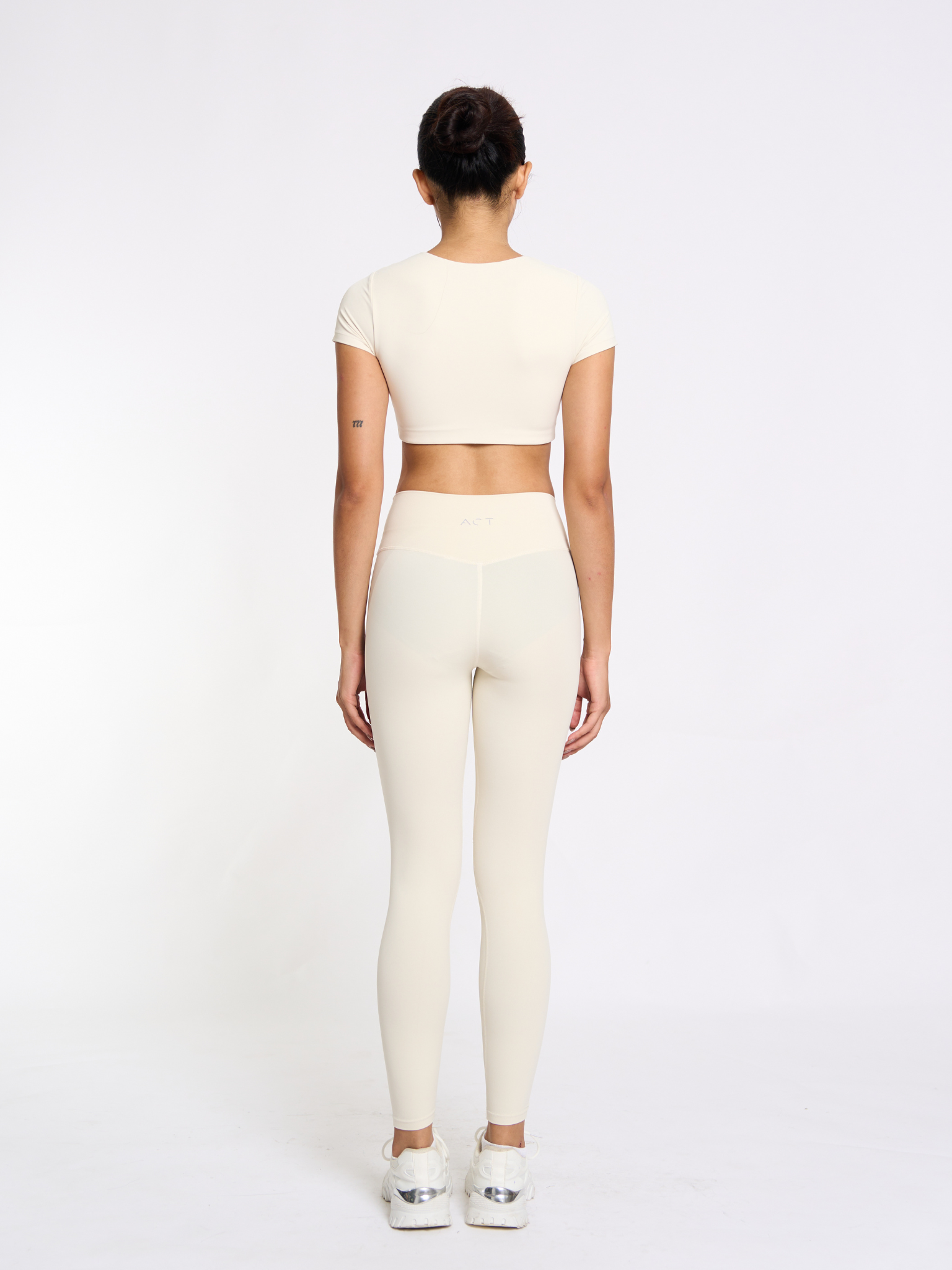 Meet the ClassicForm Set, minimal, elevated, and ready to keep up with your every move. The short-sleeve bra top is crafted with a feminine U neckline with removable pads, giving you that clean, flattering line with just the right amount of support. The leggings? High-waisted, second-skin soft, and designed to move when you do. Whether it’s a pilates class or your 10th errand of the day, this set is your go-to for feeling put together without the pressure.