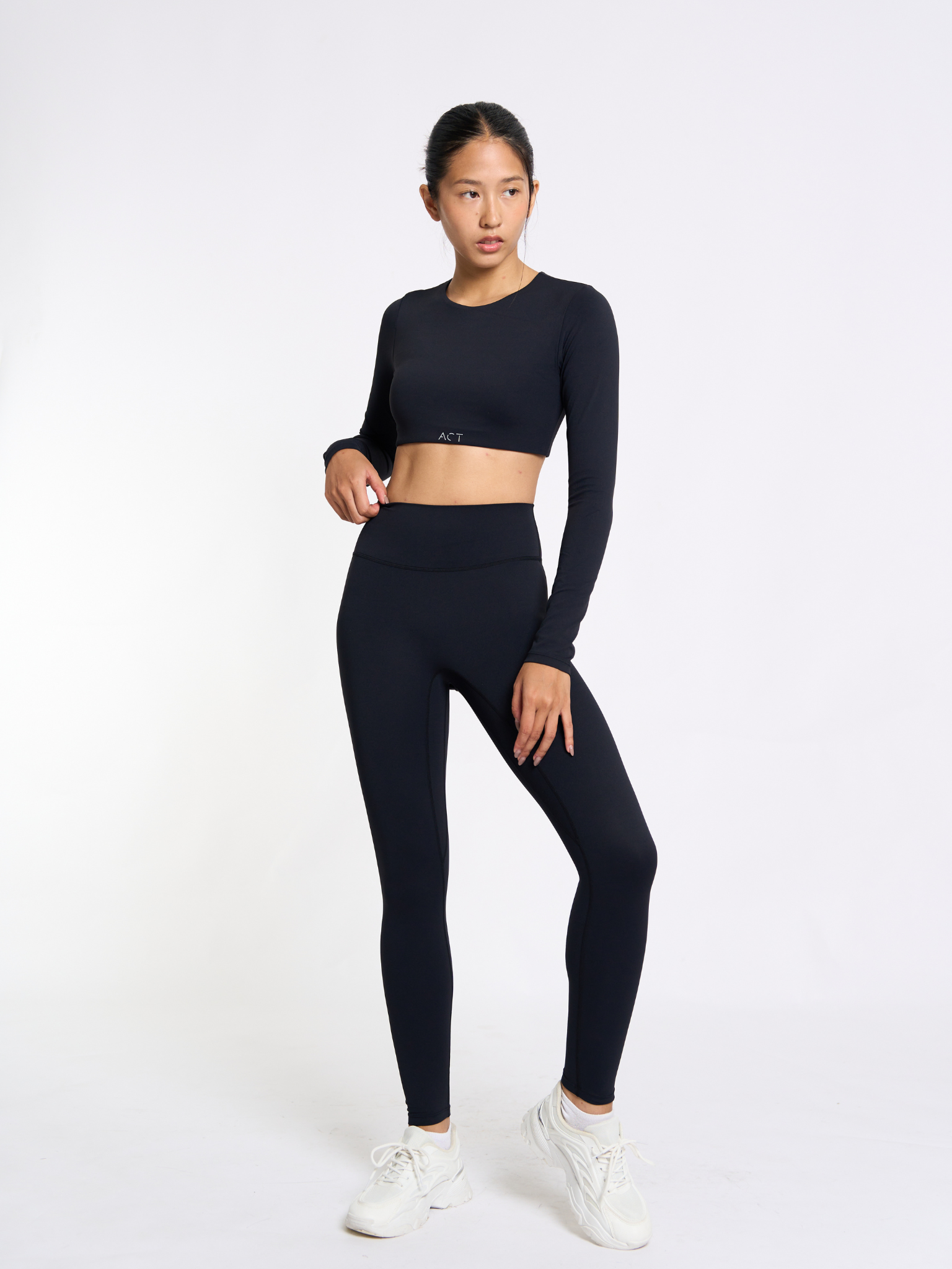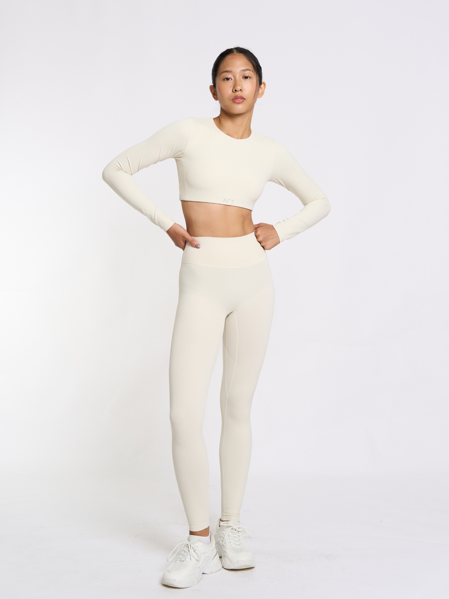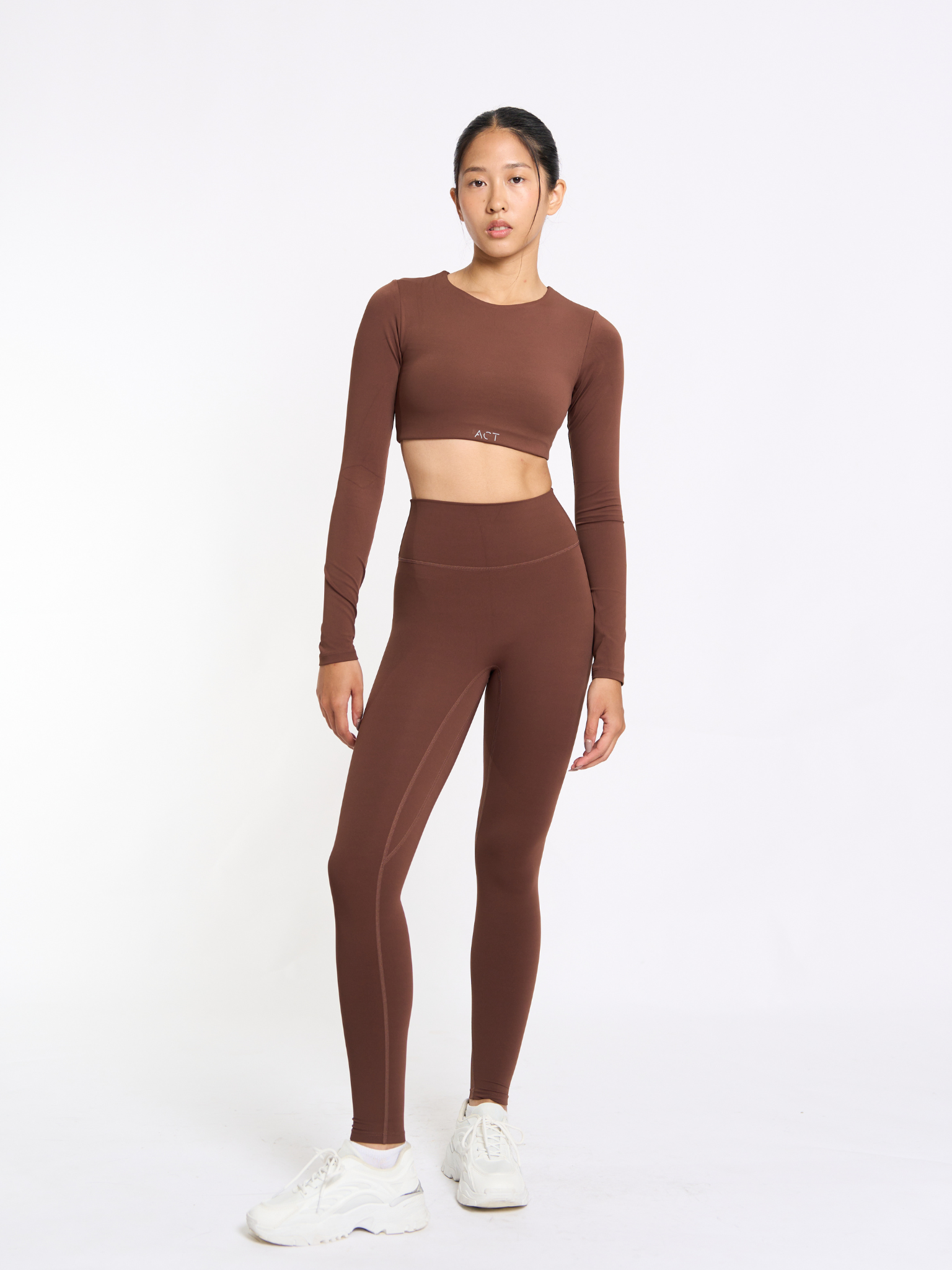 Let your form lead the way in the CoreForm Set, where comfort meets contour. Designed with a clean U-neckline and a cropped long sleeve silhouette with removable pads, this top flatters without trying too hard. Built-in removable pads give you soft support while sculpting your natural curves. Paired with high-rise leggings that hug in all the right places, this set is made to move with you from morning flow to midnight cravings.